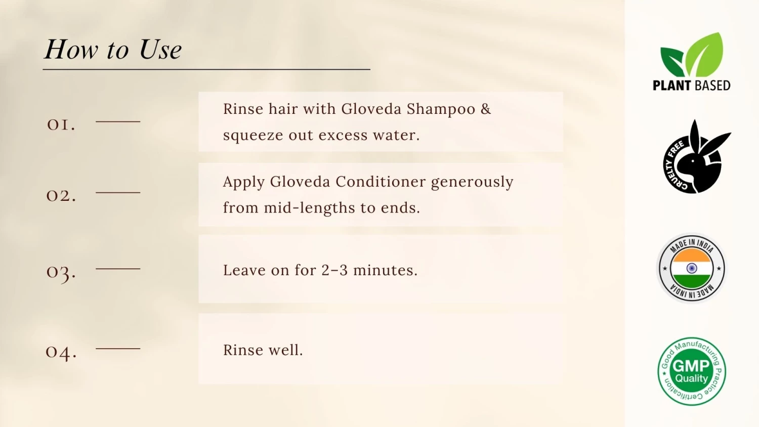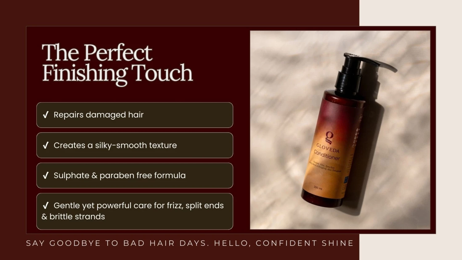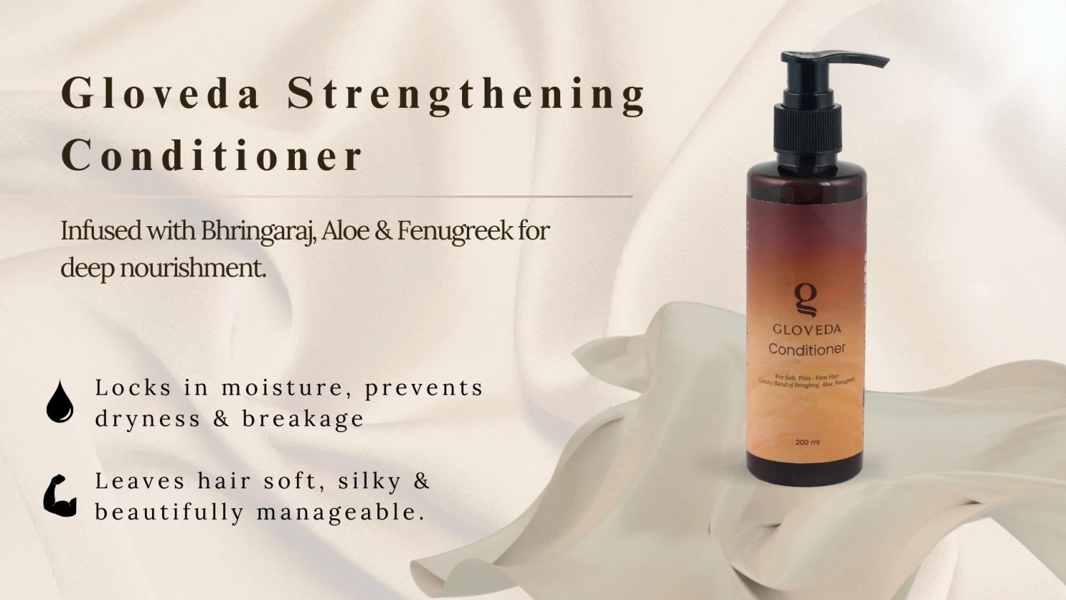 Gloveda Conditioner is the perfect finishing touch to your hair care ritual. This Ayurvedic-inspired formula blends Bhringaraj, Aloe, and Fenugreek to deeply nourish, smooth, and strengthen every strand. It helps repair damage, reduce frizz, and prevent breakage—leaving your hair soft, silky, and beautifully manageable. Free from sulphates and parabens, it offers gentle yet powerful care for dry, brittle, and frizz-prone hair.