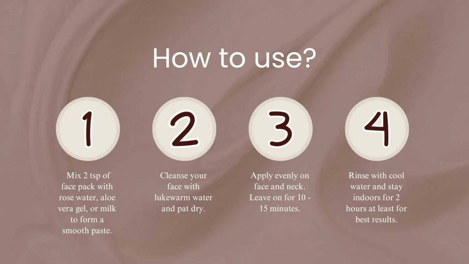 1. Mix 2 tablespoons of Gloveda Face Pack with rose water, aloe vera gel, or milk to create a smooth paste