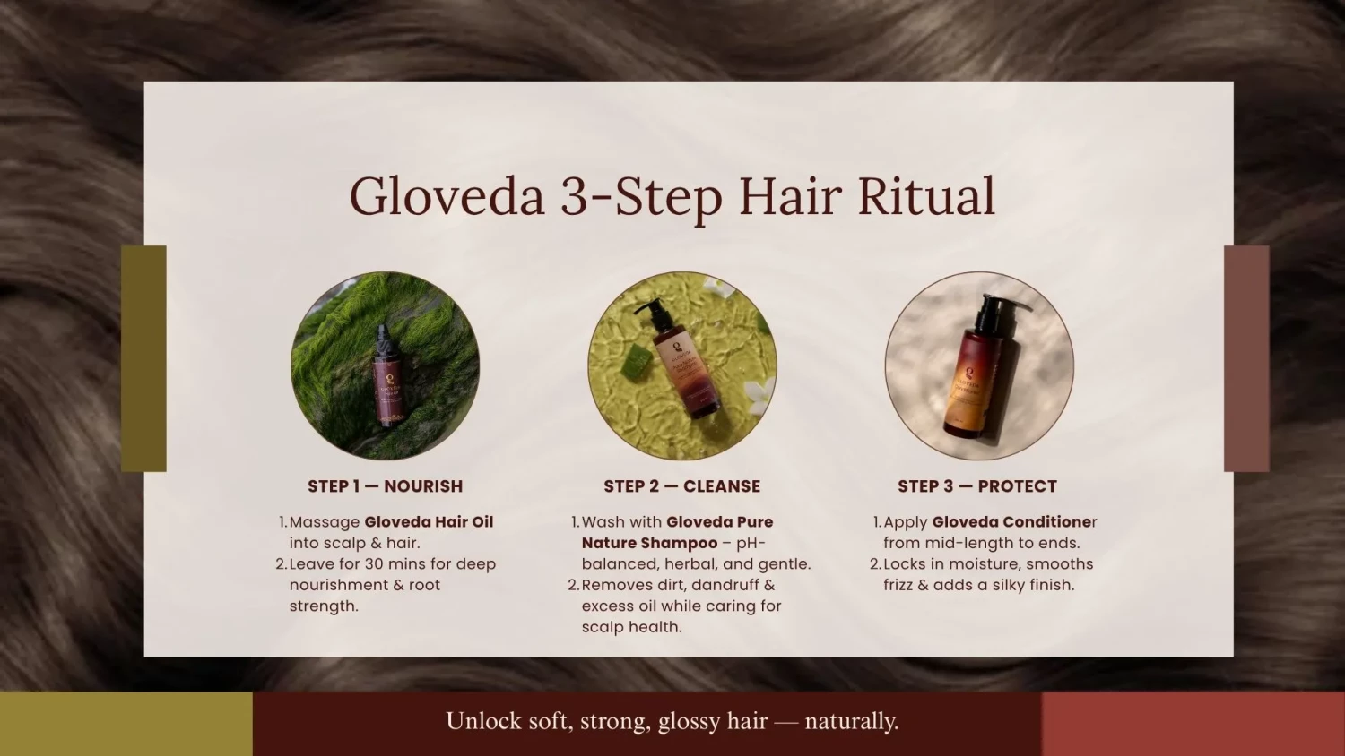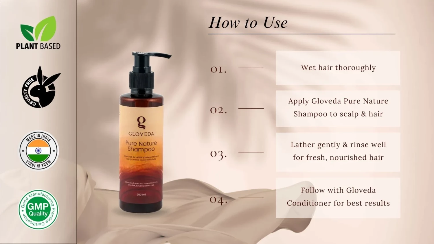 Gloveda Pure Nature Shampoo is a luxurious Ayurvedic cleanser crafted by certified Ayurvedic doctors. Its pH-balanced formula combines Neem, Manjishta, Coconut Oil, and Danthappala—nature’s own antimicrobial and revitalizing agents—to gently cleanse the scalp while addressing dandruff, dryness, itchiness, and scaling. With regular use, it promotes silky, strong, and voluminous hair while supporting long-term scalp health and root strength.